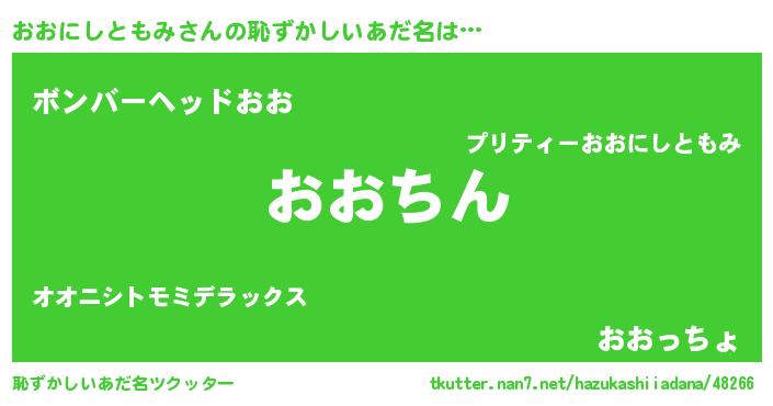 | 意味不明あだ名 | 『永久保存おおにしともみ』 |