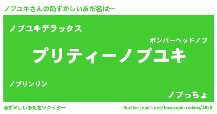 | ヒーロー風カッコイイあだ名 | 『スーパーノブユキ』『究極戦士ノブユキ』 |