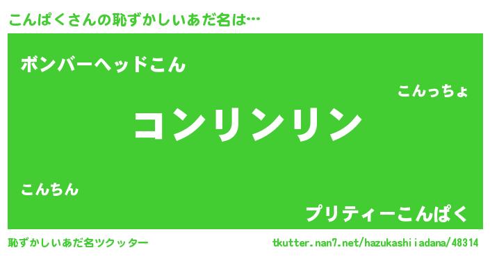 | 胡散臭い通販商品みたいなあだ名 | 『信頼と実績のサプリメント…その名も「こんぱく」』 |