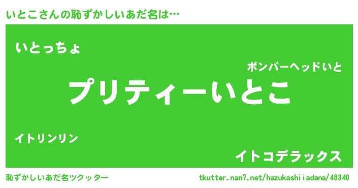 | ファンタジー風あだ名 | 『イトフェル』『エターナルイトコー』 |