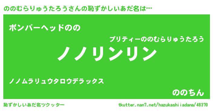 | 意味不明あだ名 | 『とにかく怪しいののむらりゅうたろう』 |