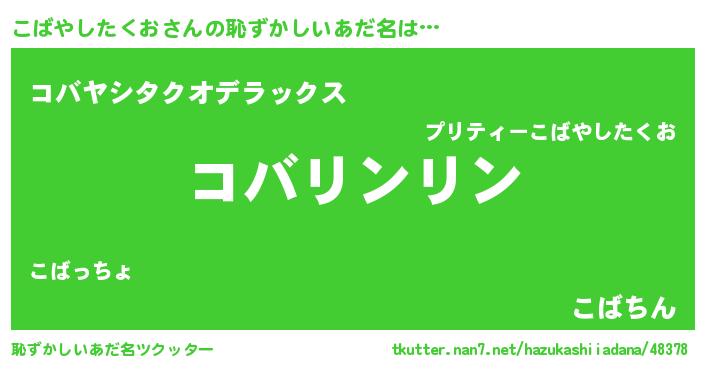 | ヘコむあだ名 | 『こばっちょ』『こばやしたくお(震え声)』 |