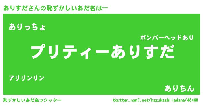 | ヘコむあだ名 | 『ありにゅー』『酢こんぶ』『ありお』 |