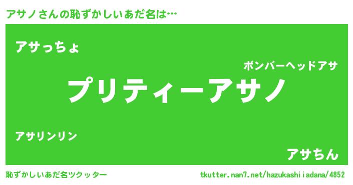 | ヒーロー風カッコイイあだ名 | 『スーパーアサノ』『ウルトラアサノマン』 |
