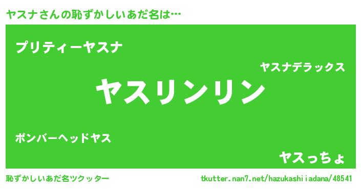 | 男性向けラノベタイトル風あだ名 | 『緋弾のヤスナ』『ヤスナスレイヤー』 |