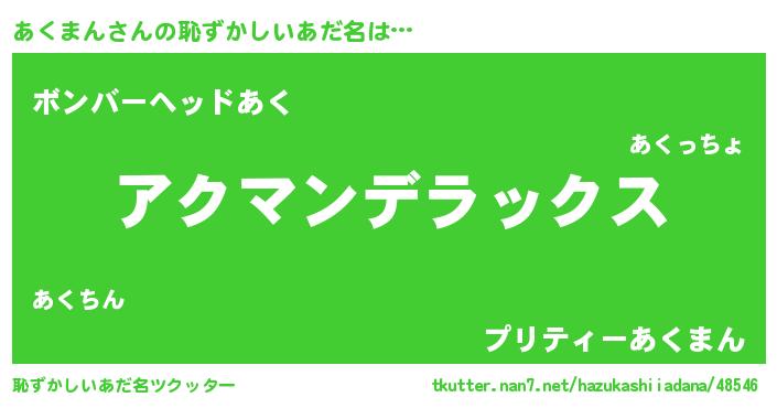 | 男性向けラノベタイトル風あだ名 | 『魔法科高校のあくまん』 |