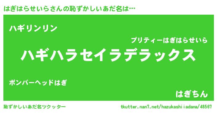 | 意味不明あだ名 | 『自称はぎはらせいら』 |