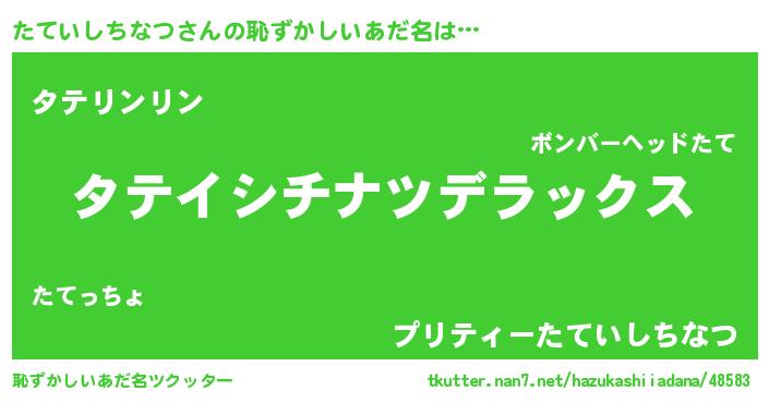 | 男性向けラノベタイトル風あだ名 | 『タテイシチナツスレイヤー』 |