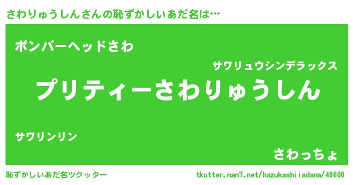 | 男性向けラノベタイトル風あだ名 | 『さわりゅうしんの憂鬱』 |