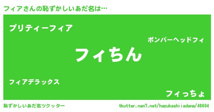 | ヘコむあだ名 | 『フィア(小並感)』『フィにゅー』 |