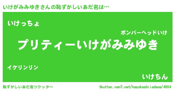 | 胡散臭い通販商品みたいなあだ名 | 『必ず成功するブレスレット…その名も「いけがみみゆき」』 |