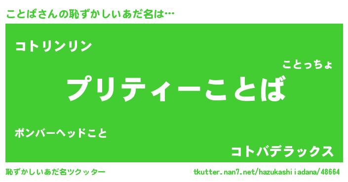 | ヘコむあだ名 | 『ことふぇ~』『ことお』『なまこ酢』 |