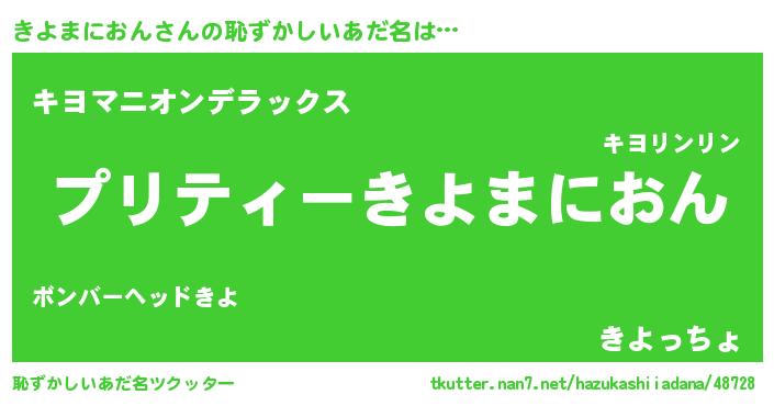 | 胡散臭い通販商品みたいなあだ名 | 『モテモテ間違いなし霊験あらたかなお札…その名も「きよまにおん」』 |