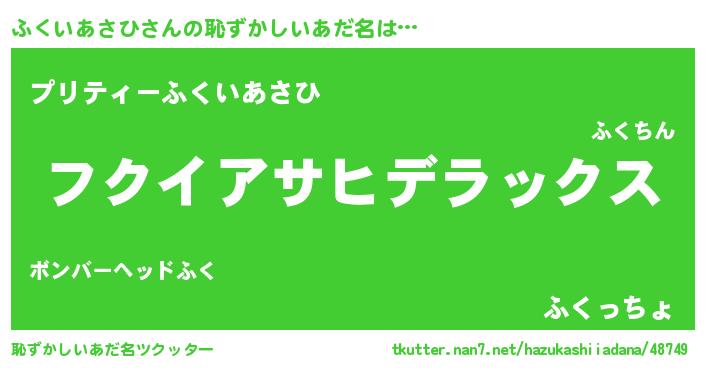 | 意味不明あだ名 | 『自称ふくいあさひ』 |