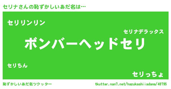 | ヘコむあだ名 | 『セリお』『豆乳』『セリナ(小並感)』 |
