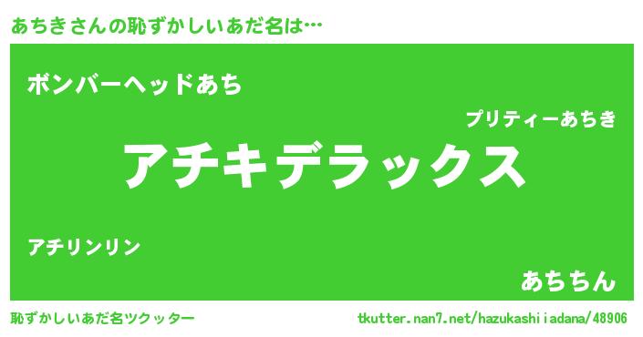 | ヒーロー風カッコイイあだ名 | 『仮面アチダー』『超時空戦士アチキ』 |