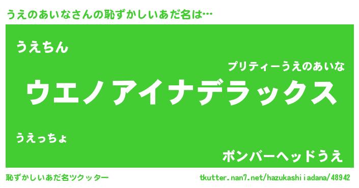 | ヘコむあだ名 | 『うえのあいな(苦笑)』『うえにゅー』 |
