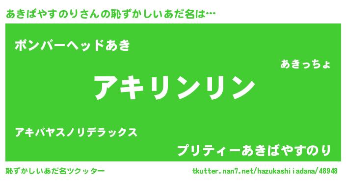 | 意味不明あだ名 | 『とにかく怪しいあきばやすのり』 |