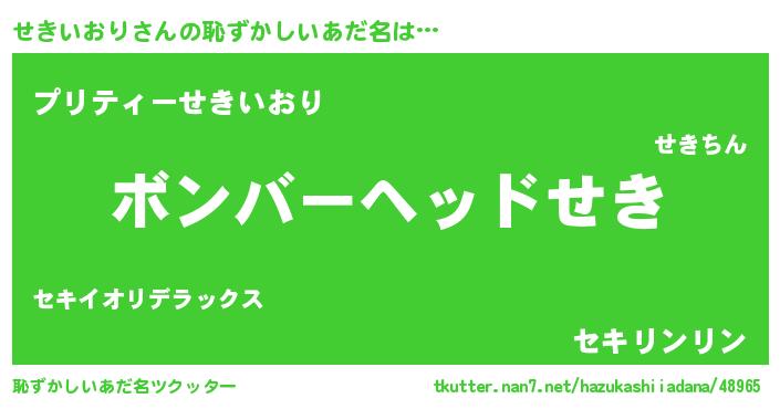 | ヒーロー風カッコイイあだ名 | 『正義の使者せきいおり』『幻影騎士セキ』 |