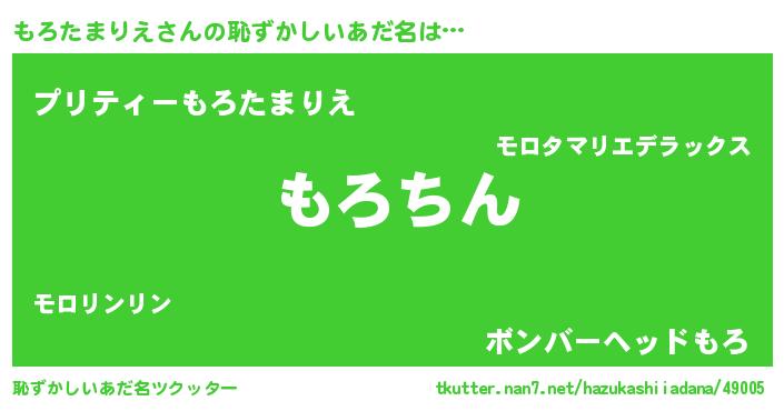 | 意味不明あだ名 | 『永久保存もろたまりえ』 |