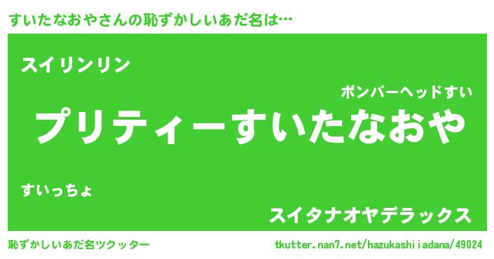 | ヒーロー風カッコイイあだ名 | 『スーパースイタナオヤ』『仮面スイダー』 |