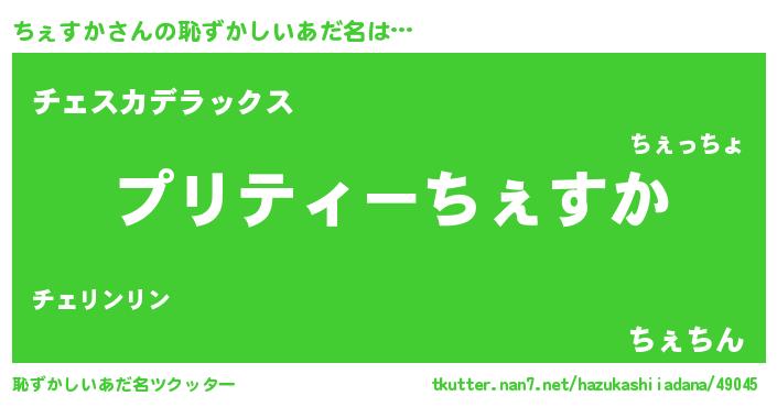 | ヘコむあだ名 | 『ちぇもー』『ちぇすか(笑)』 |