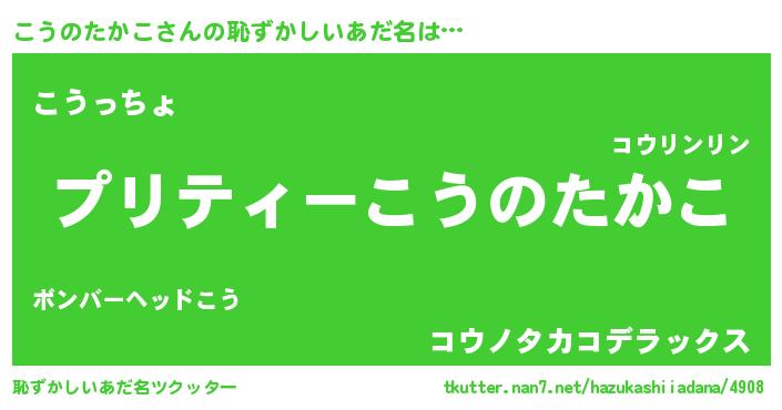 | ヒーロー風カッコイイあだ名 | 『スーパーコウノタカコ』『仮面コウダー』 |
