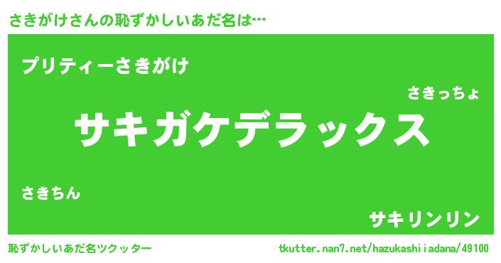 | ヒーロー風カッコイイあだ名 | 『仮面サキダー』『最強戦士サキガケ』 |