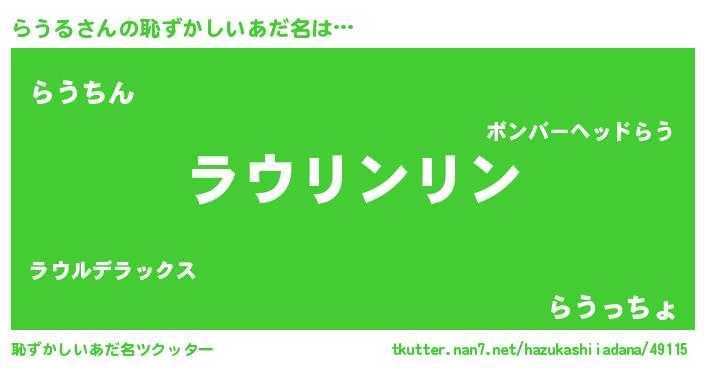 | ヘコむあだ名 | 『らうを』『らうる(震え声)』 |