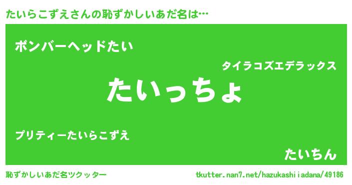 | 意味不明あだ名 | 『住所不定無職たいらこずえ(1歳)』 |