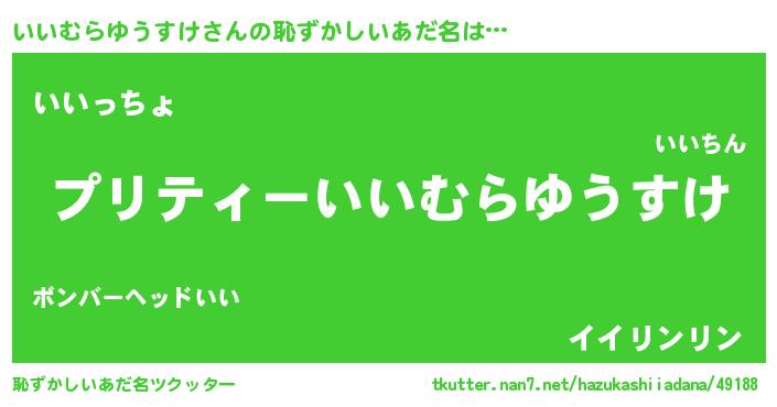 | 男性向けラノベタイトル風あだ名 | 『いいむらゆうすけの憂鬱』 |