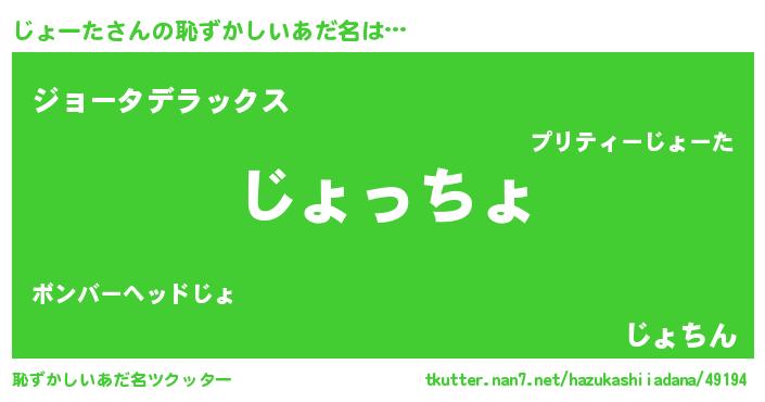 | 意味不明あだ名 | 『じょーたフォーエバー』『自称じょーた』 |