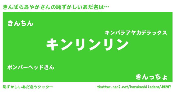 | 意味不明あだ名 | 『とにかく怪しいきんばらあやか』 |