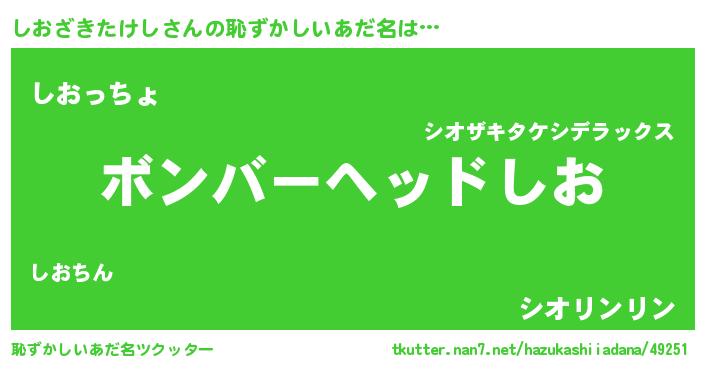 | ヒーロー風カッコイイあだ名 | 『愛の使者しおざきたけし』 |
