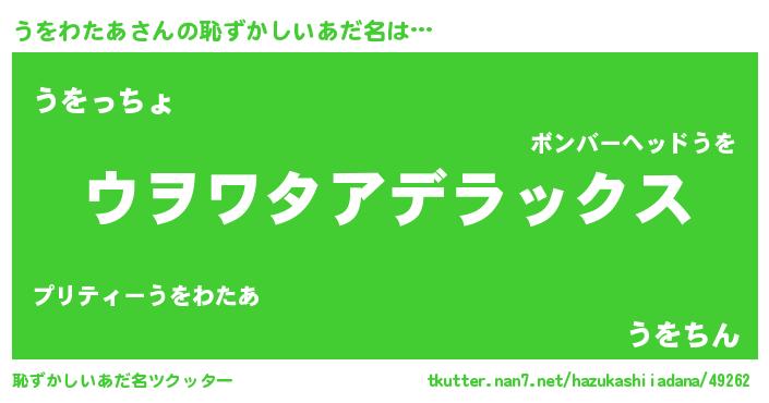 | 意味不明あだ名 | 『住所不定無職うをわたあ(41歳)』 |