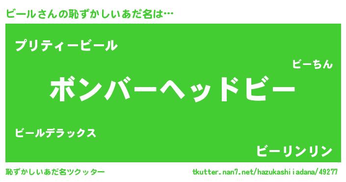 | 欧米人風あだ名 | 『トリンドルビール』『ダニエルビール』 |