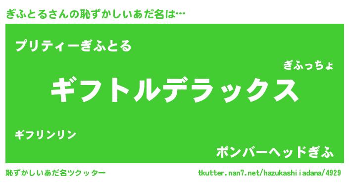 | ヒーロー風カッコイイあだ名 | 『究極戦士ギフトル』『仮面ギフダー』 |