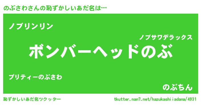 | ヒーロー風カッコイイあだ名 | 『正義の使者のぶさわ』『天弓騎士ノブ』 |