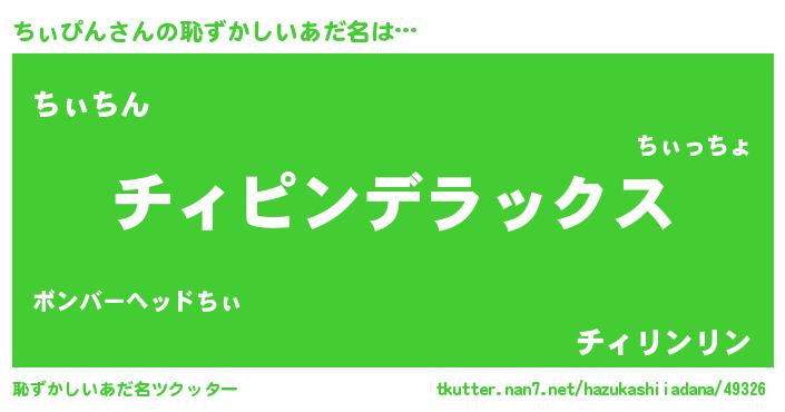 | ヒーロー風カッコイイあだ名 | 『サイバー戦士チィピン』『仮面チィダー』 |