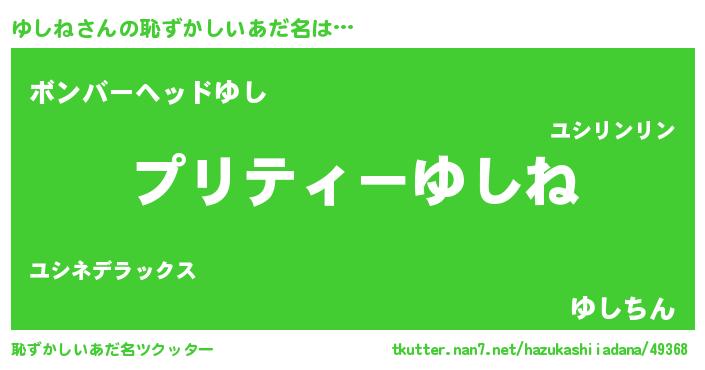 | ヒーロー風カッコイイあだ名 | 『スーパーユシネ』『正義の使者ゆしね』 |