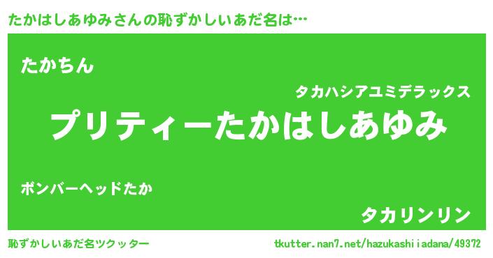 | ヘコむあだ名 | 『たかふぇ~』『たかはしあゆみ(笑)』 |