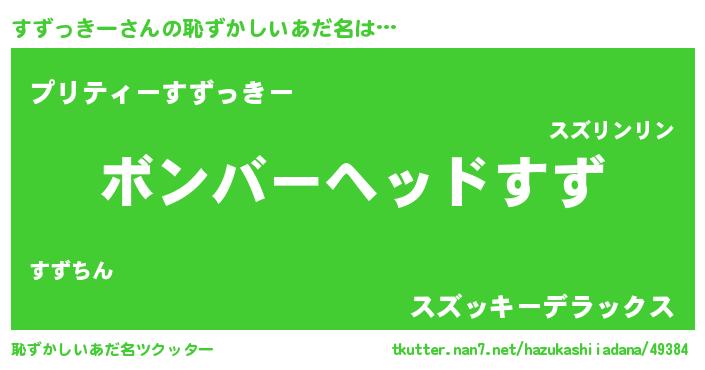| ヒーロー風カッコイイあだ名 | 『慈愛の使者すずっきー』『炎刃騎士スズ』 |