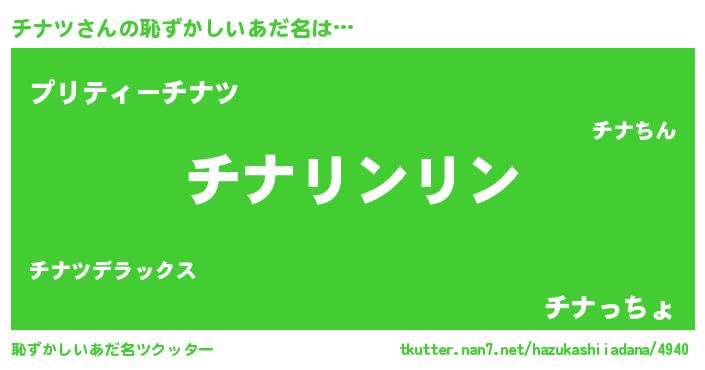 | ヘコむあだ名 | 『チナお』『チナもー』『なまこ酢』 |