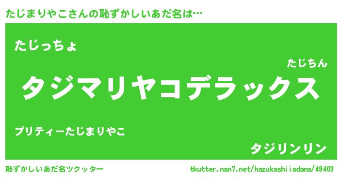 | 意味不明あだ名 | 『自称たじまりやこ』 |