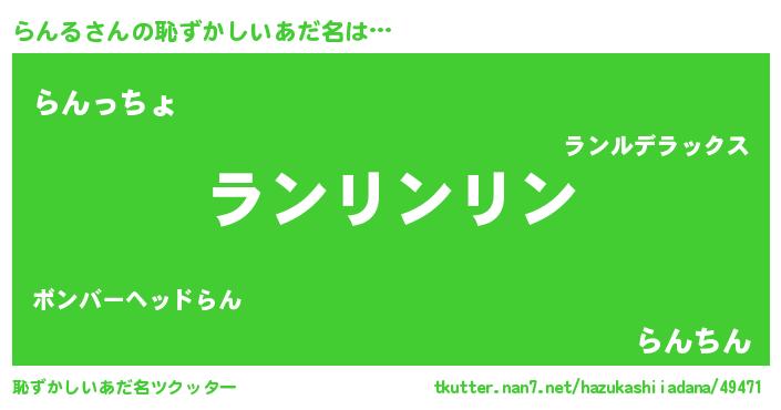 | 意味不明あだ名 | 『たけのこ科らんる属』『永久保存らんる』 |