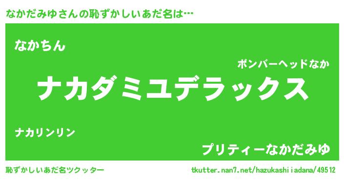 | 意味不明あだ名 | 『自称なかだみゆ』『永久保存なかだみゆ』 |