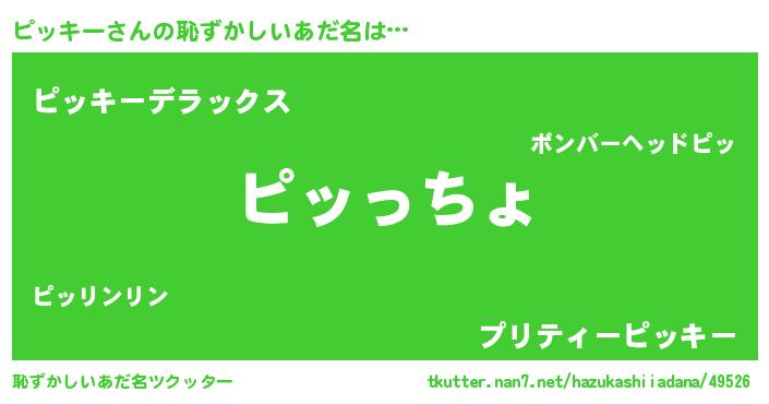 | 男性向けラノベタイトル風あだ名 | 『この素晴らしい世界にピッキーを!』 |