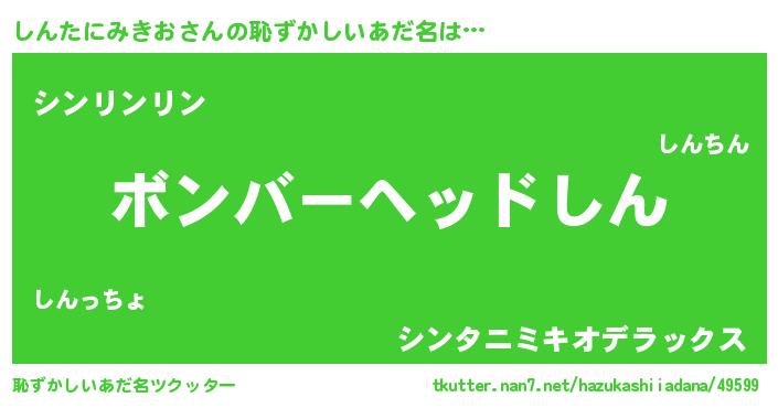 | ヒーロー風カッコイイあだ名 | 『慈愛の使者しんたにみきお』 |