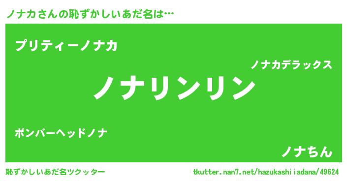 | 男性向けラノベタイトル風あだ名 | 『ノナカスレイヤー』『緋弾のノナカ』 |