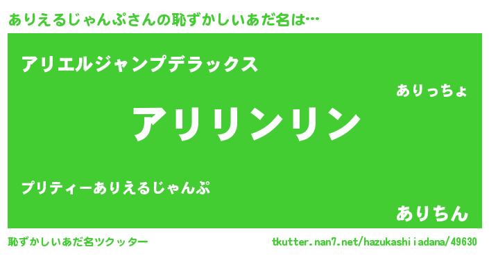 | 男性向けラノベタイトル風あだ名 | 『ありえるじゃんぷ~年齢イコール彼女いない歴の魔法使い~』 |